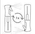 Feiner Aerosol-Sprühnebel ohne Treibgas für gleichmäßiges Benetzen. mit speziellen Wasserspeichersystem, welches einen Sprühstoß im 360°-Winkel ermöglicht.